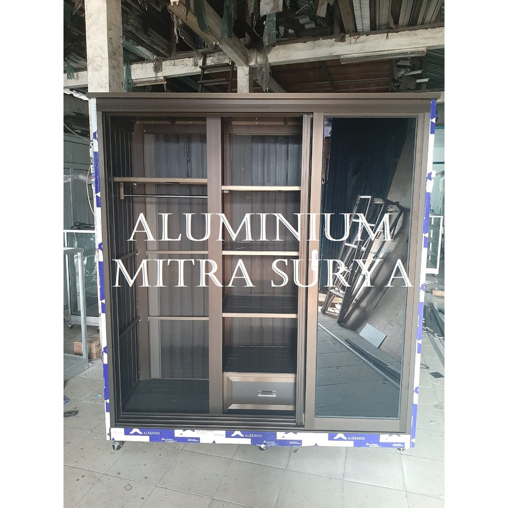 Lemari pakaian 2 pintu full plat alumunium tebal: Tak heran jika banyak pengusaha membuat lemari pakaian dengan berbagai macam model yang modern dan tentunya memiliki nilai estetika yang tinggi. 4 lemari plus meja bisa jadi pilihan. Berikut ini referensi harga yang dapat dijadikan acuan sebelum membeli lemari gantung aluminium: Model lemari pakaian 3 pintu sama dengan 2 pintu saja, yang memebdakan adalah ukuran lemari pakaian 3 pintu jauh lebih besar.